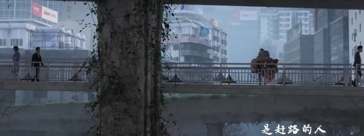 匍匐在城市的人行天桥,侧卧在工地地板,画面都是灰调。
