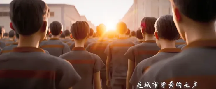 此时大量镜头给到这个瘦小的身躯,一边在广州干着底层苦力工作,一边艰苦生活。