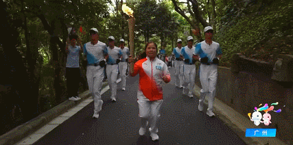 第一位由广州市培养的跳水奥运会冠军杨景辉手持火炬,在这座见证的广州古城历史的活化石前迈出了第一步。